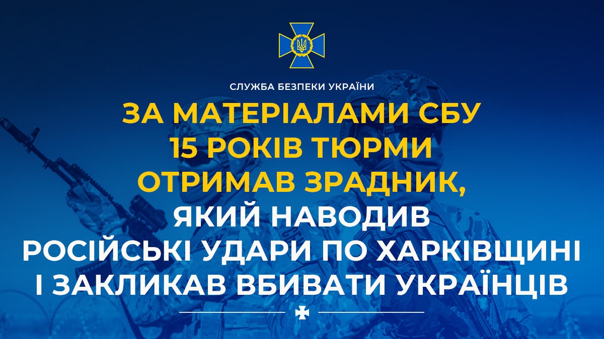 За матеріалами СБУ 15 років тюрми отримав зрадник, який наводив російські удари по Харківщині і закликав вбивати українців