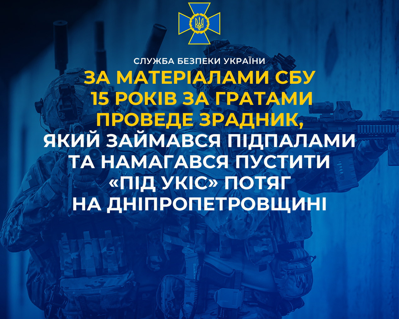 За матеріалами СБУ 15 років за гратами проведе зрадник, який займався підпалами та намагався пустити «під укіс» потяг на Дніпропетровщині