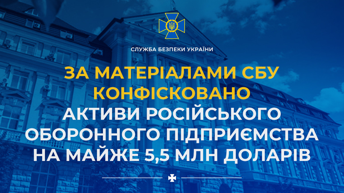 За матеріалами СБУ конфісковано активи російського оборонного підприємства на майже 5,5 млн доларів