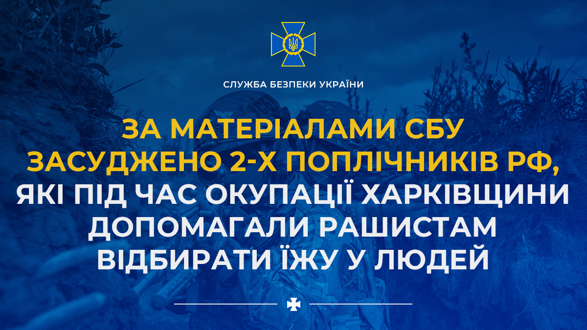 За матеріалами СБУ засуджено 2-х поплічників рф, які під час окупації Харківщини допомагали рашистам відбирати їжу у людей