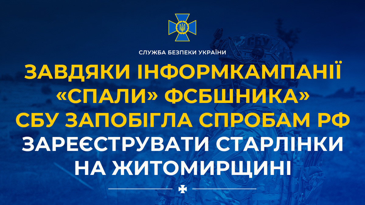 Завдяки інформкампанії «Спали» ФСБшника» СБУ запобігла спробам рф зареєструвати Старлінки на Житомирщині