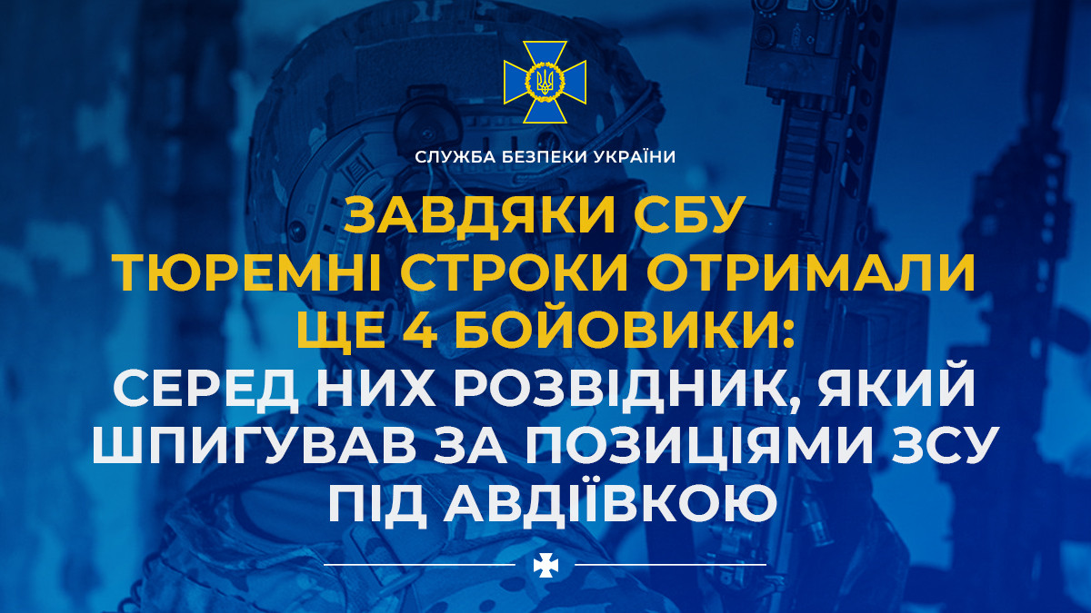 Завдяки СБУ тюремні строки отримали ще 4 бойовики: серед них розвідник, який шпигував за позиціями ЗСУ під Авдіївкою