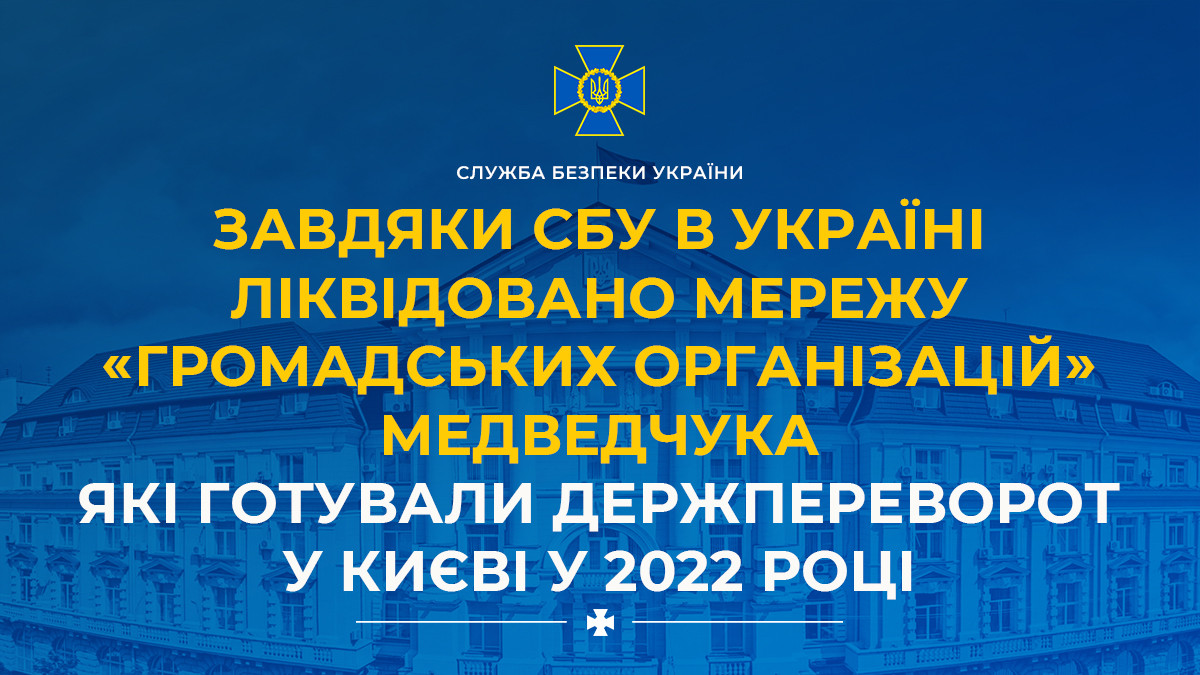 Завдяки СБУ в Україні ліквідовано мережу «громадських організацій» Медведчука, які готували держпереворот у Києві у 2022 році