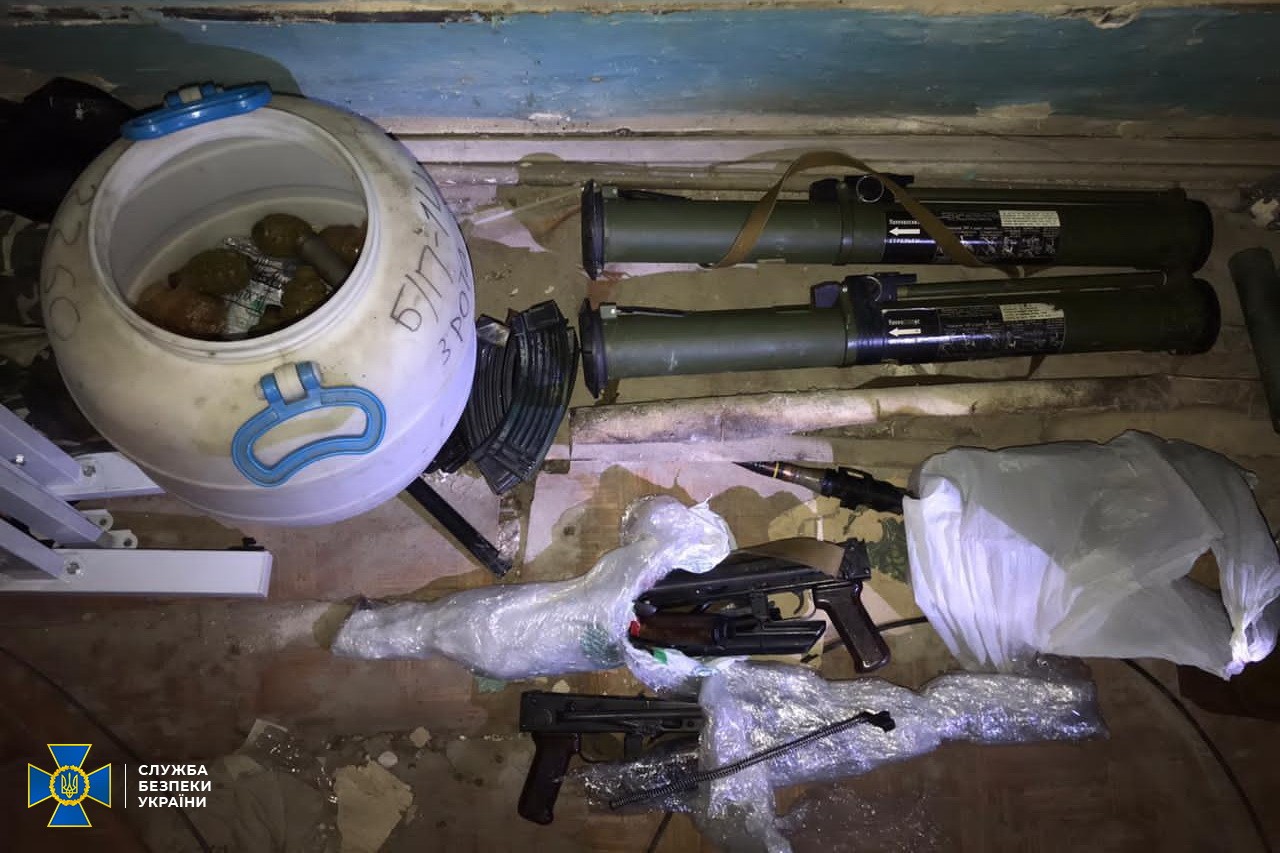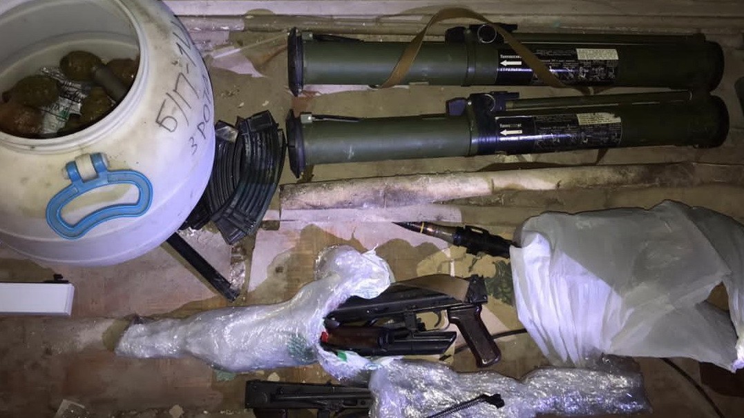Наразі слідчо-оперативною групою та експертами продовжуються обшуки приміщень та вилучення військових засобів ураження.