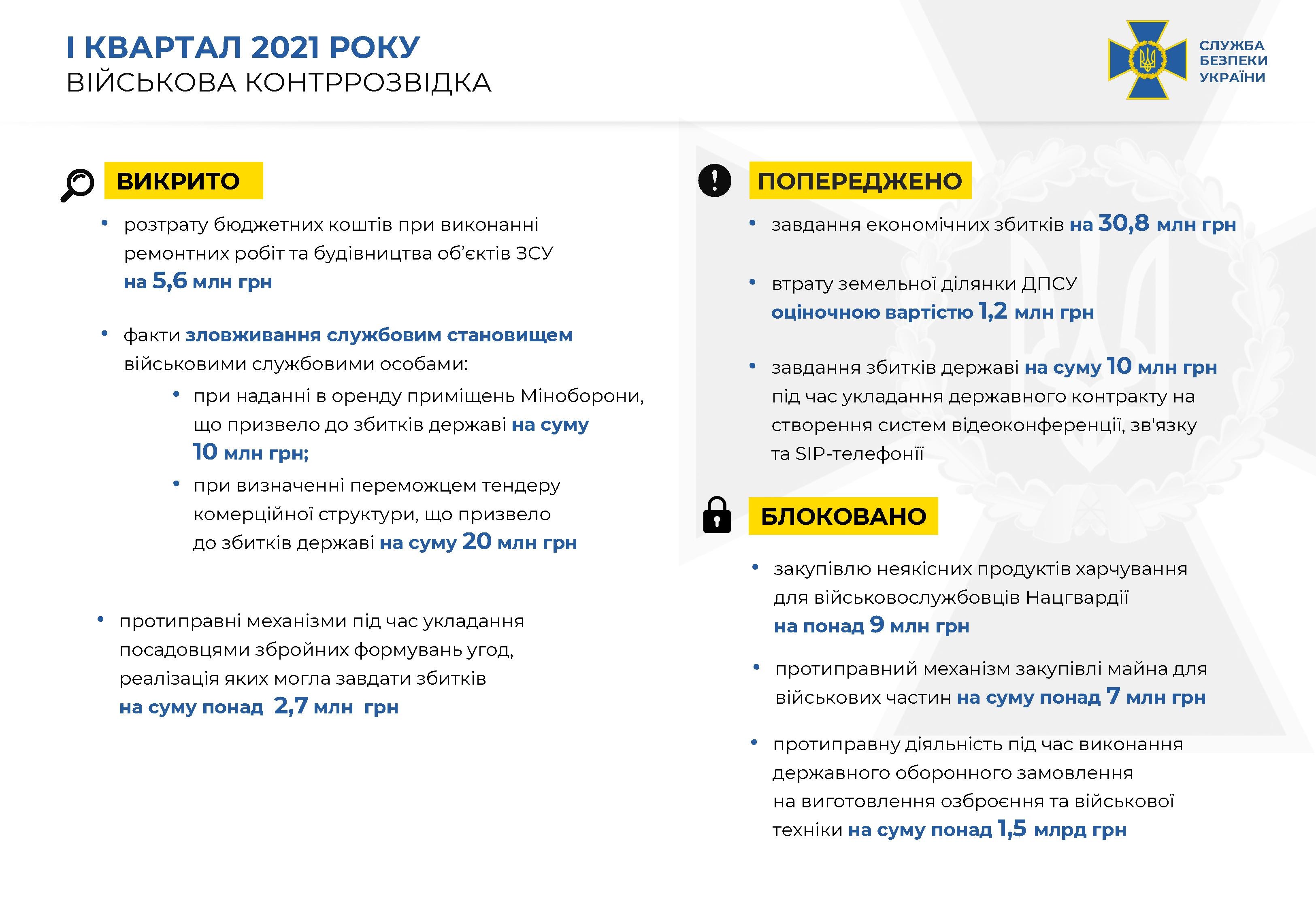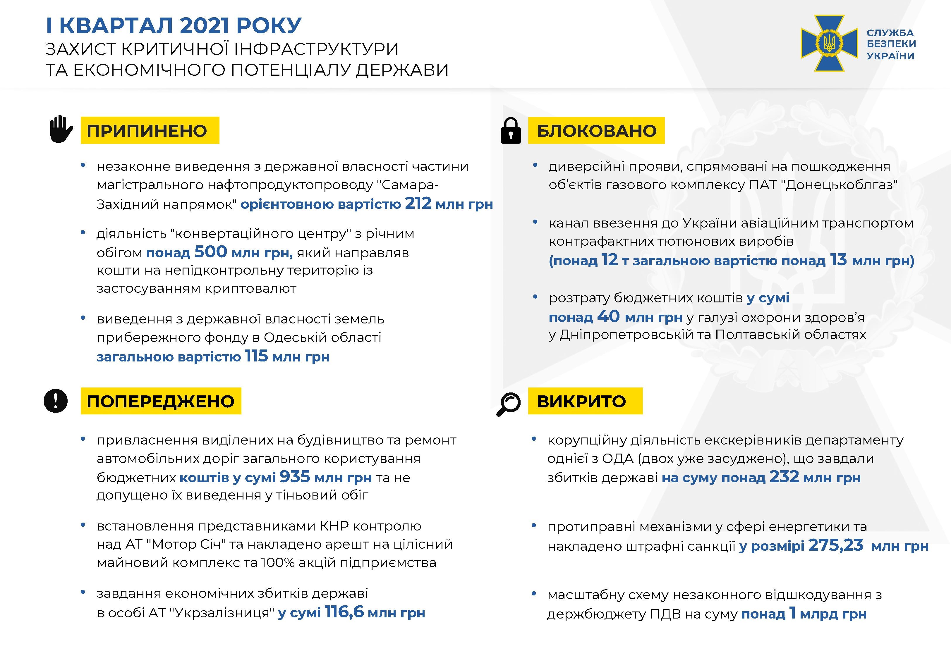 Результати СБУ за I квартал 2021 року