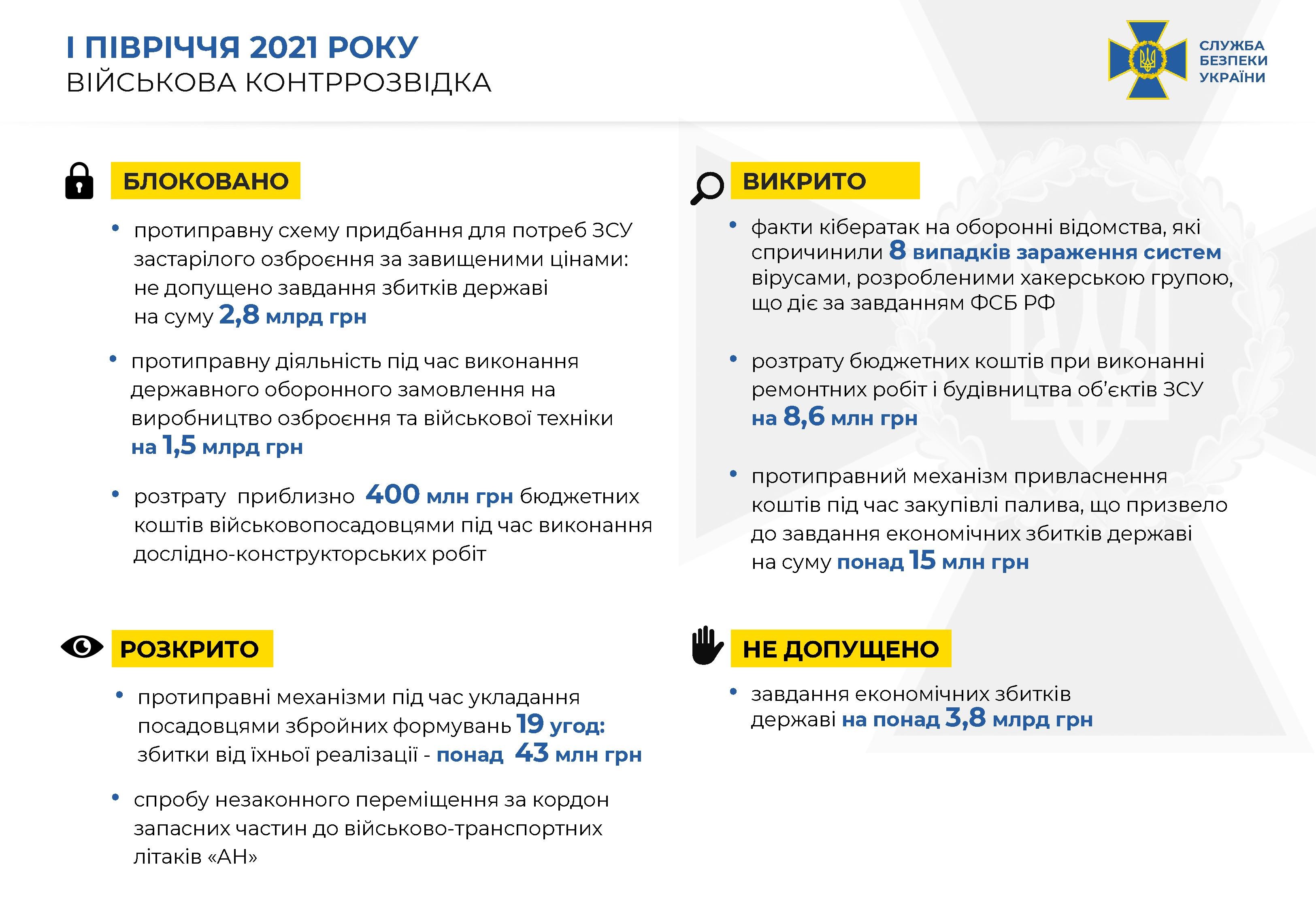 Результати СБУ за I півріччя 2021 року